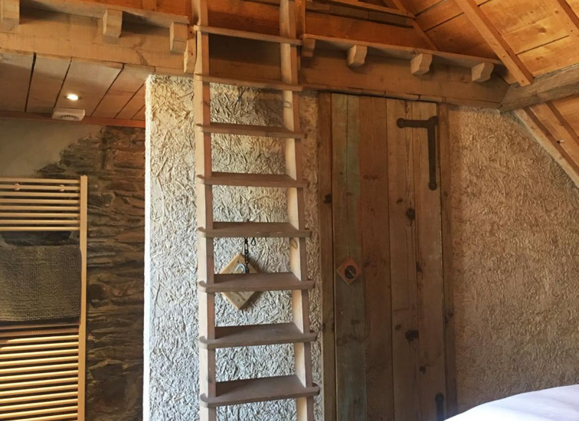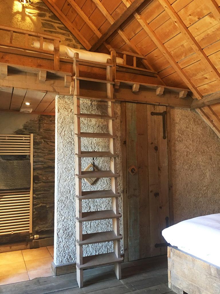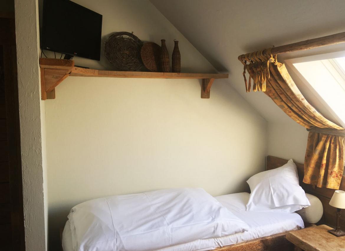 • 3 chambres : 2-3 personnes, 2 lits « simple » et 1 lit en mezzanine accessible via échelle, TV, salle de douche privative + lavabo + WC