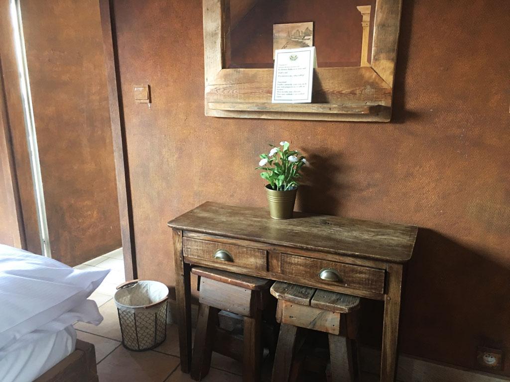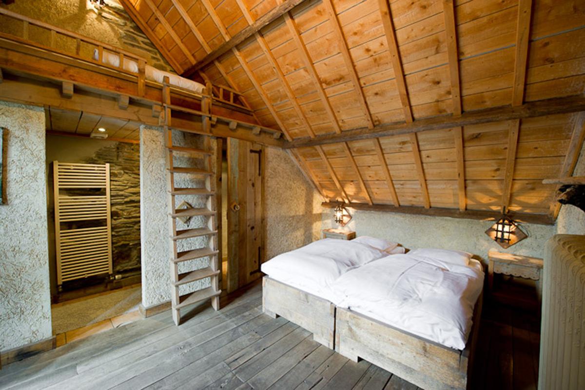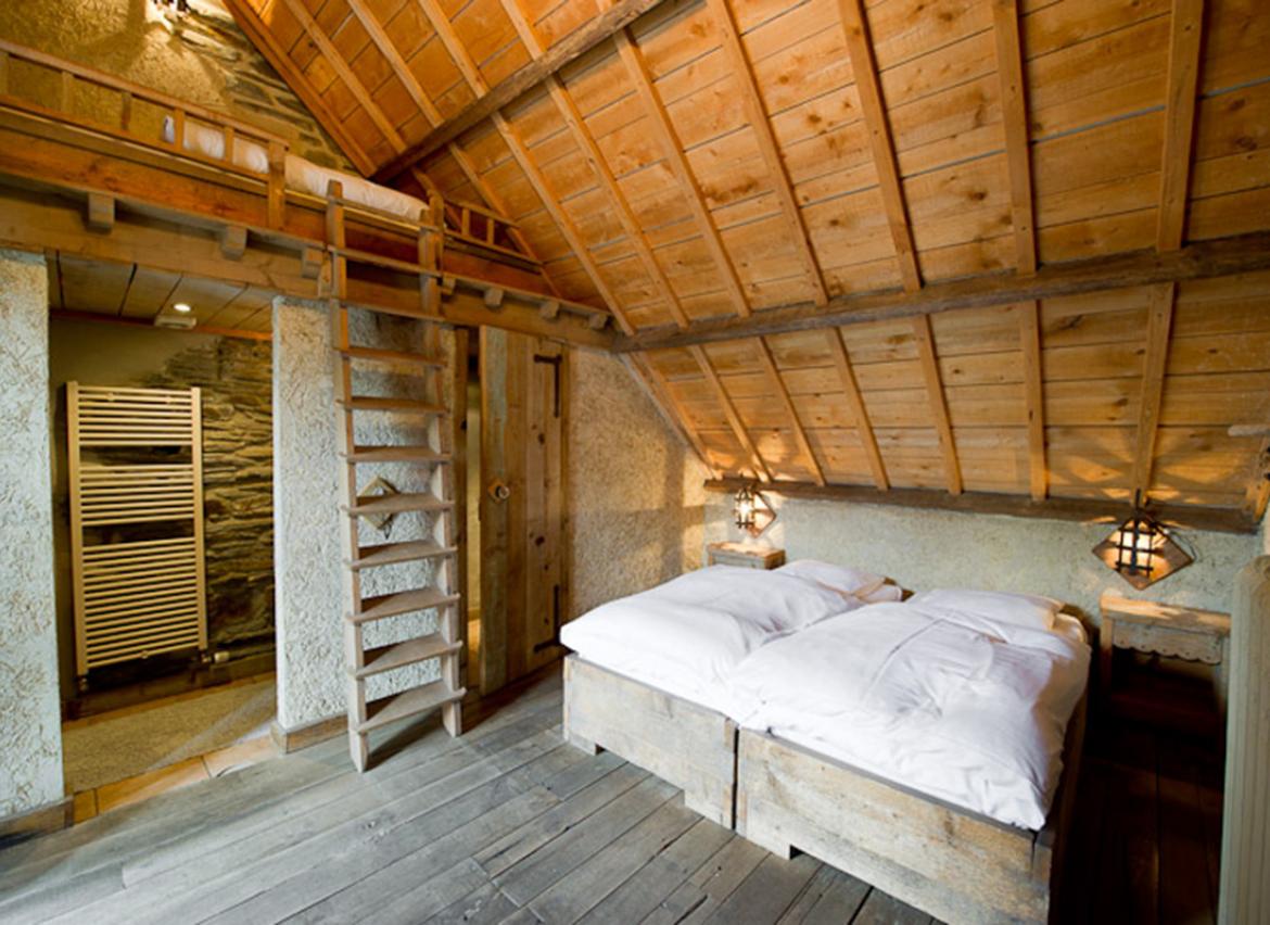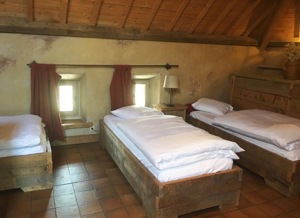 • 3 chambres : 2-3 personnes, 2 lits « simple » et 1 lit en mezzanine accessible via échelle, TV, salle de douche privative + lavabo + WC