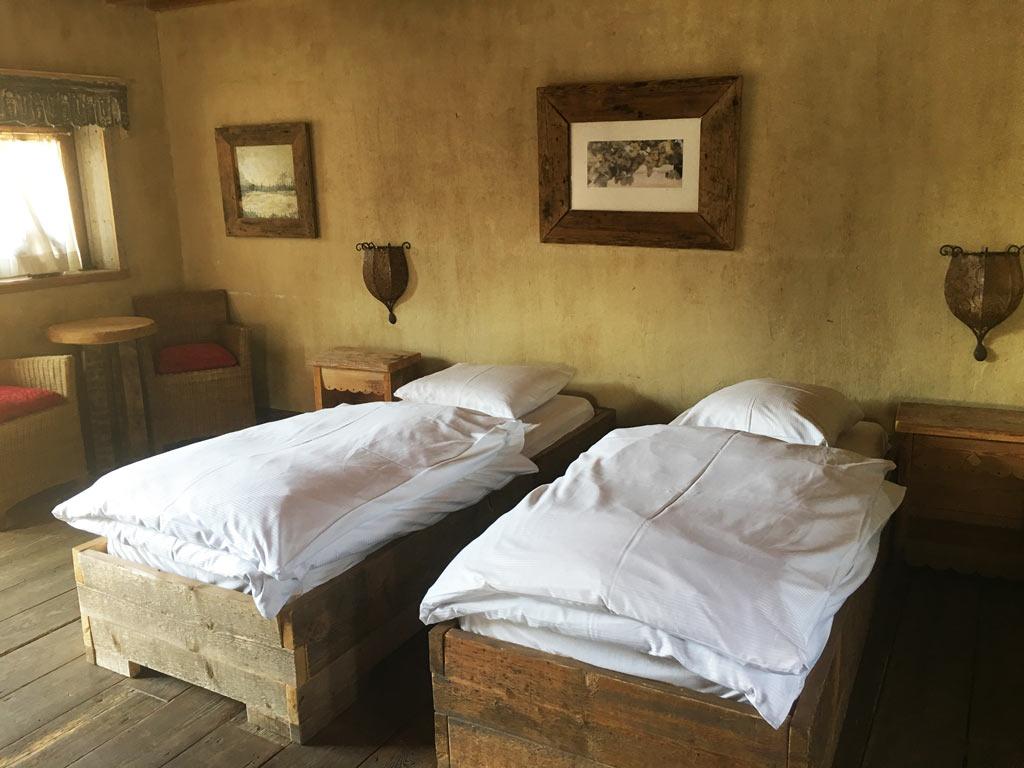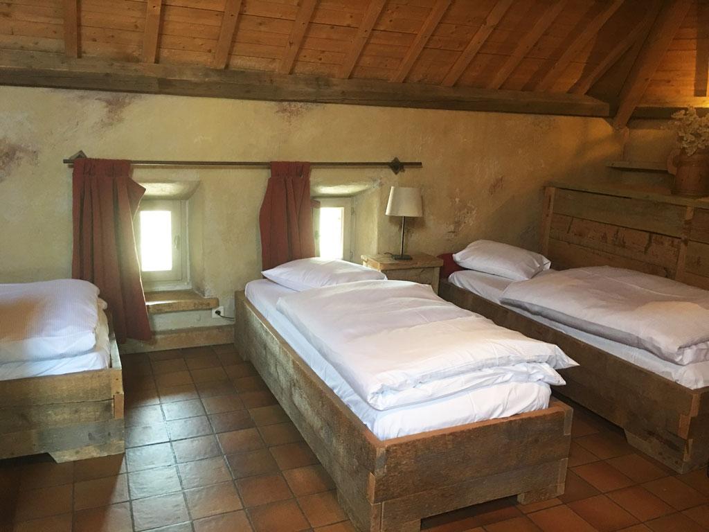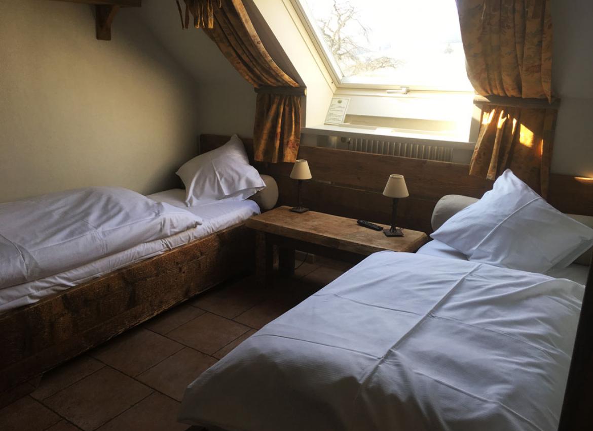 • 3 chambres : 2 personnes en lit « simple », TV, salle de douche privative + lavabo + WC