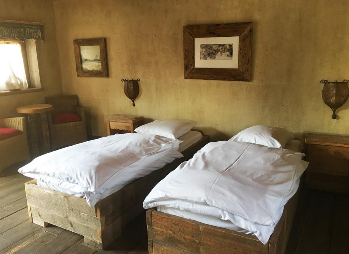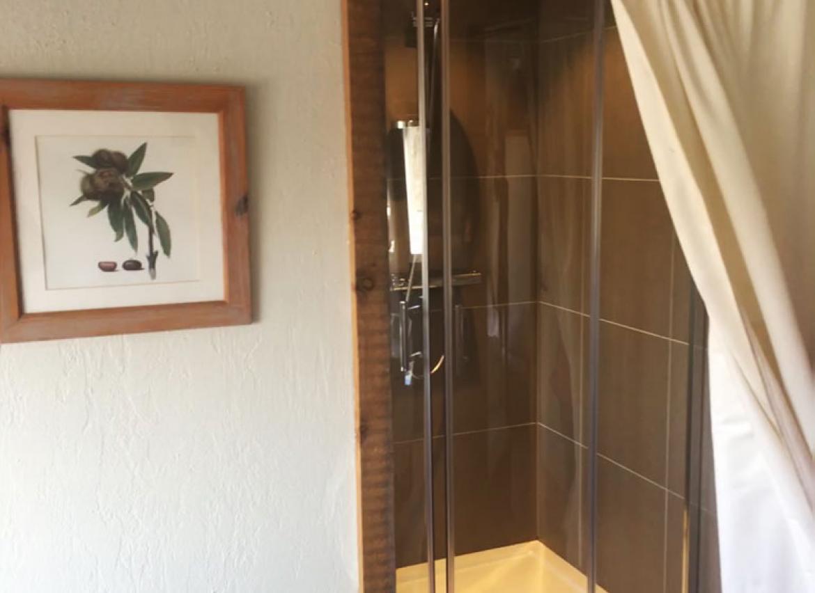 • 1 chambre : 5 personnes en lit « simple », TV, salle de douche privative + lavabo + WC (accessible via un sas extérieur)