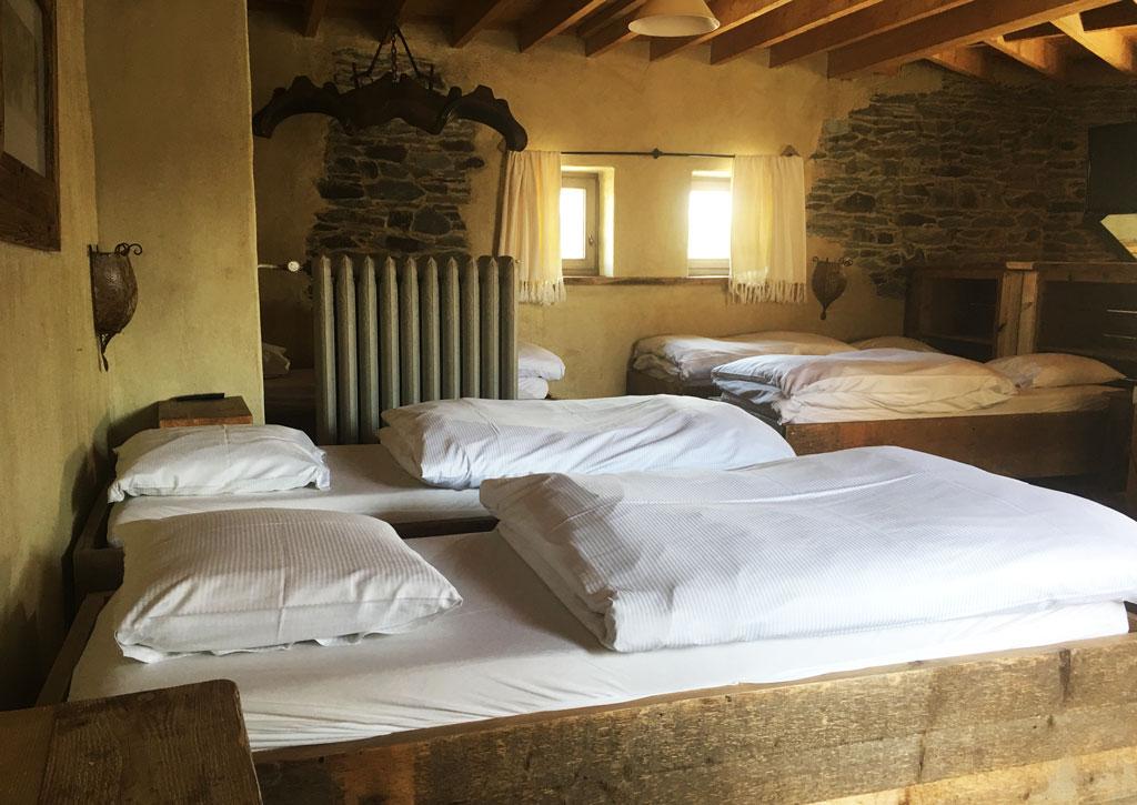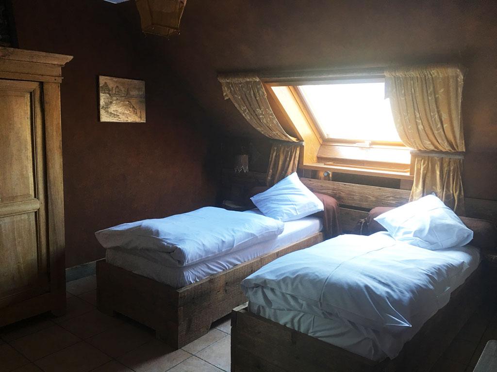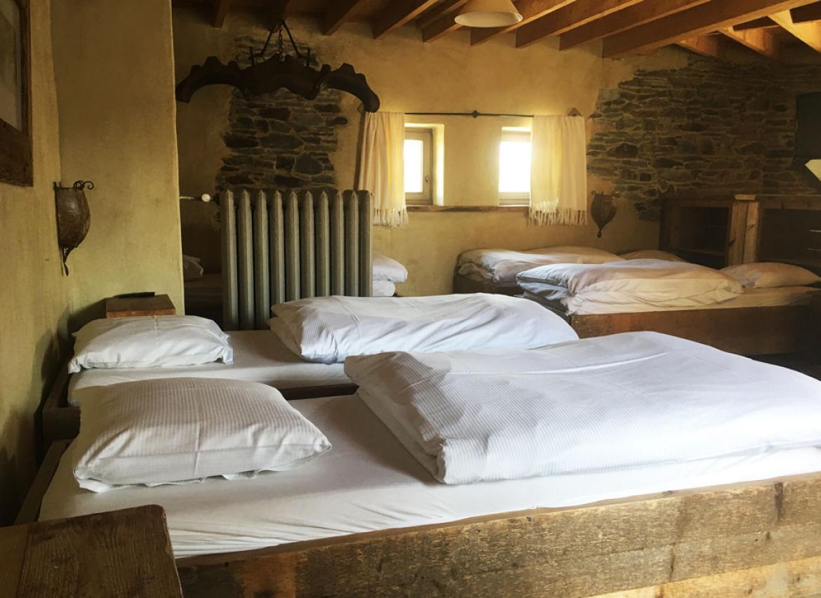 • 1 chambre : 5 personnes en lit « simple », TV, salle de douche privative + lavabo + WC
