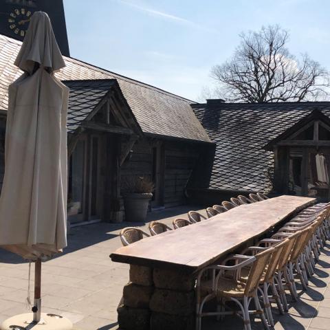 - Grande terrasse avec tables et chaises
