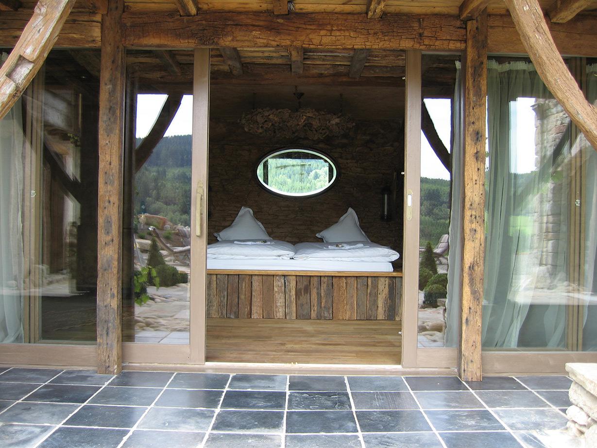• Wellnessruimte toegankelijk via buitengalerij: sauna, stoombad met essentiële oliën, badkuip, douches